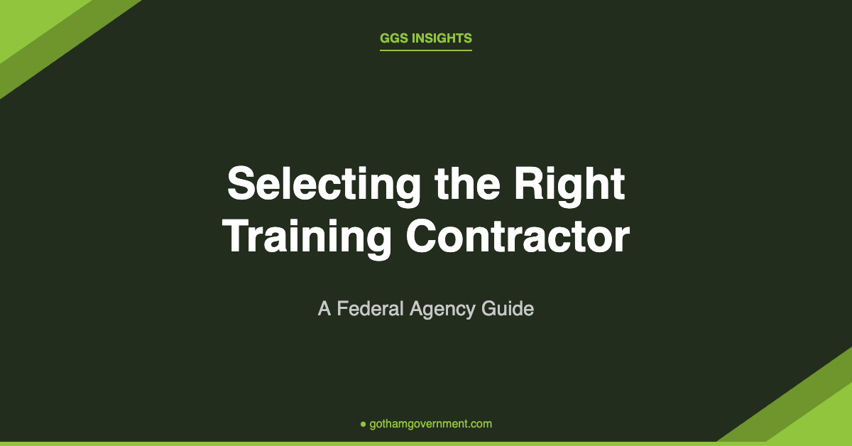 With over 15 years of direct experience serving 40+ government clients and delivering more than 1,000 learning products, Gotham Government Services understands what federal agencies need from their training partners. This guide walks you through the selection process, helping you identify and evaluate federal training and development contractors that align with your mission, budget, and strategic objectives.