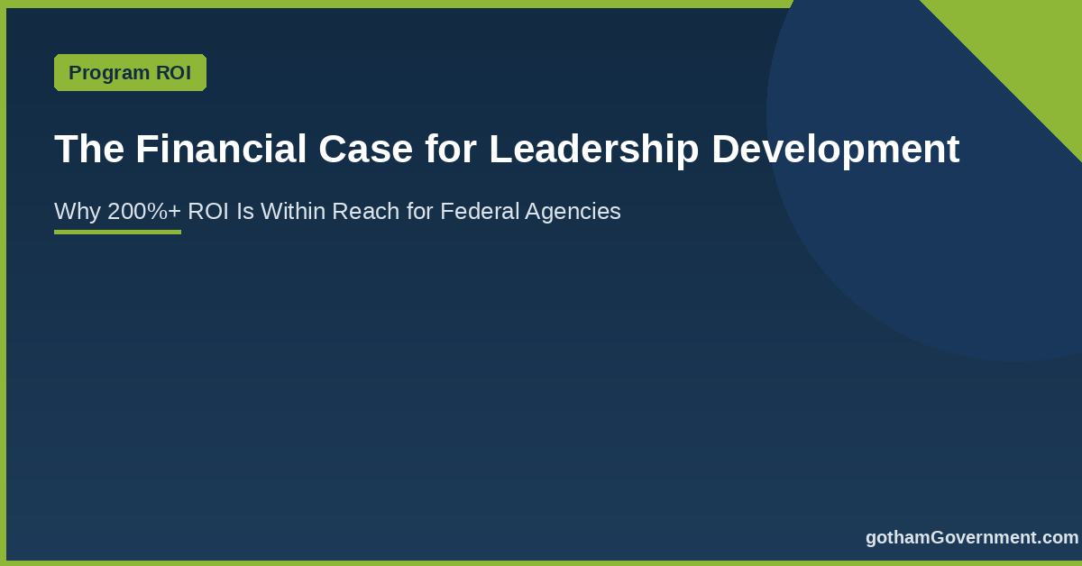 The financial case for federal leadership development is well-documented, peer-reviewed, and expressible in the same terms that budget decision-makers use. The challenge is making it explicitly, with dollar values attached to each outcome — not just program learning metrics.